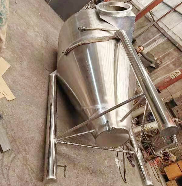 在相同的切向速度下筒體直徑D愈小,粒子受到的性離心力愈大,除塵效率愈高,但若簡體直徑過小,粒子容易逃逸,使效率下降,另外,錐體適當加長,對提高除塵效率有利。除塵器分割直徑的推導過程表明,排出管直徑愈小分割直徑愈小,即除塵效率愈高。但排出管直徑太小,會導致壓力降的增加,一般取排出管直徑d,=(0.4-0.65)D。實踐表明,簡體和錐體的總高度以不大于5倍的簡體直徑為宜。
