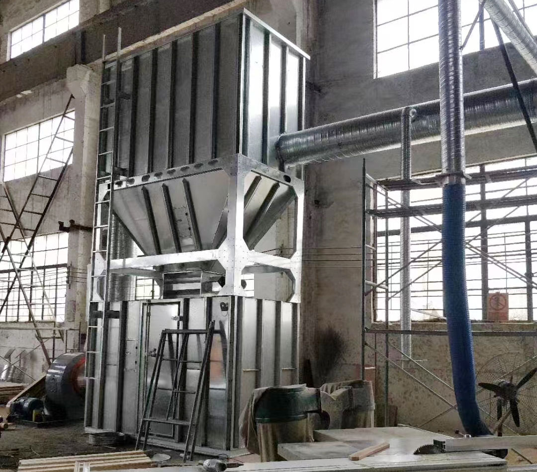 2.5、針對木材粉塵濃度大的特點,我們對除塵器采用漸變的氣流通道設計,保證氣流均勻分布。對氣流組織進行優化設計,避免對除塵器內部局部區域高速沖刷與磨損。使清灰壓縮空氣做到所有濾袋均勻地噴吹與過濾,提高濾袋的整體壽命。