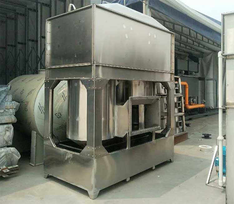 含塵廢氣由風管引入凈化塔,經過旋轉洗滌桶時風帶加快,帶動填料球飛帶運轉,在洗滌桶里,含塵廢氣與水霧沖鋒混合洗滌、中和反應(水里面補充有酸堿時),廢氣經過凈化后,再經除霧層脫水除霧后由風機排入大氣或再進入其他凈化設備(光氧催化、低溫等離子等)、吸收液再塔底經水泵增壓后在箱頂噴淋霧化而下,***后回流至箱底循環使用,凈化后的廢氣達到國家排放標準。