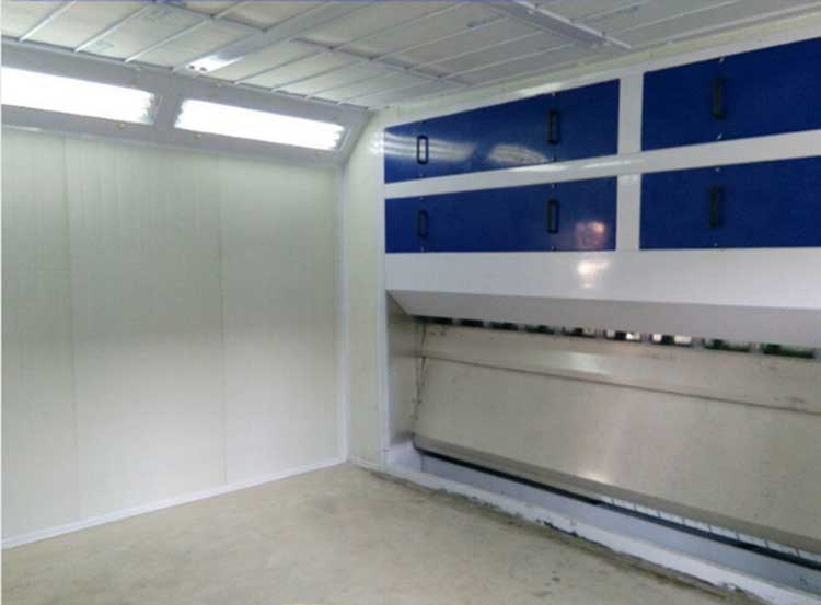 噴漆房根據工件的尺寸、形狀、重量和生產程序可進行多種配置,例如開放式和封閉式;連續式和間歇式;工件旋轉或固式定;單面噴涂和雙面噴涂??梢愿鶕煌脩舻木唧w需求定制,在實踐中應用較多的有如下幾種類型噴漆房。