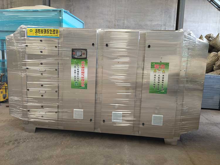 二、活性炭吸附箱:活性炭是一種多孔的含碳物質,其發達的空隙結構使它具有很大的表面積,所以很容易與空氣中的有毒有害氣體充分接觸,活性炭孔周圍強大的吸附力場會立即將有毒有害氣體分子吸入孔內,從而達到凈化有機廢氣的目的。廢氣吸附箱內的活性炭,一般3至4個月就需要更換。因為活性炭吸附廢氣達到飽和之后,就沒有凈化廢氣的功能了。