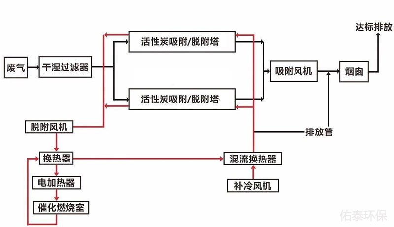 二、活性炭吸附脫附催化燃燒設備催化燃燒是典型的氣-固相催化反應,它借助催化劑降低了反應的活化能,使其在較低的起燃溫度200~ 400℃下進行無焰燃燒,有機物質氧化發生在固體催化劑表面,同時產生CO 2 和H 2 O,并放出大量的熱量。因其氧化反應溫度低,所以大大地抑制了空氣中的N 2 形成高溫NOx。而且由于催化劑有選擇性催化作用,有可能限制燃料中含氮化合物(RNH)的氧化過程,使其多數形成分子氮(N 2 )。